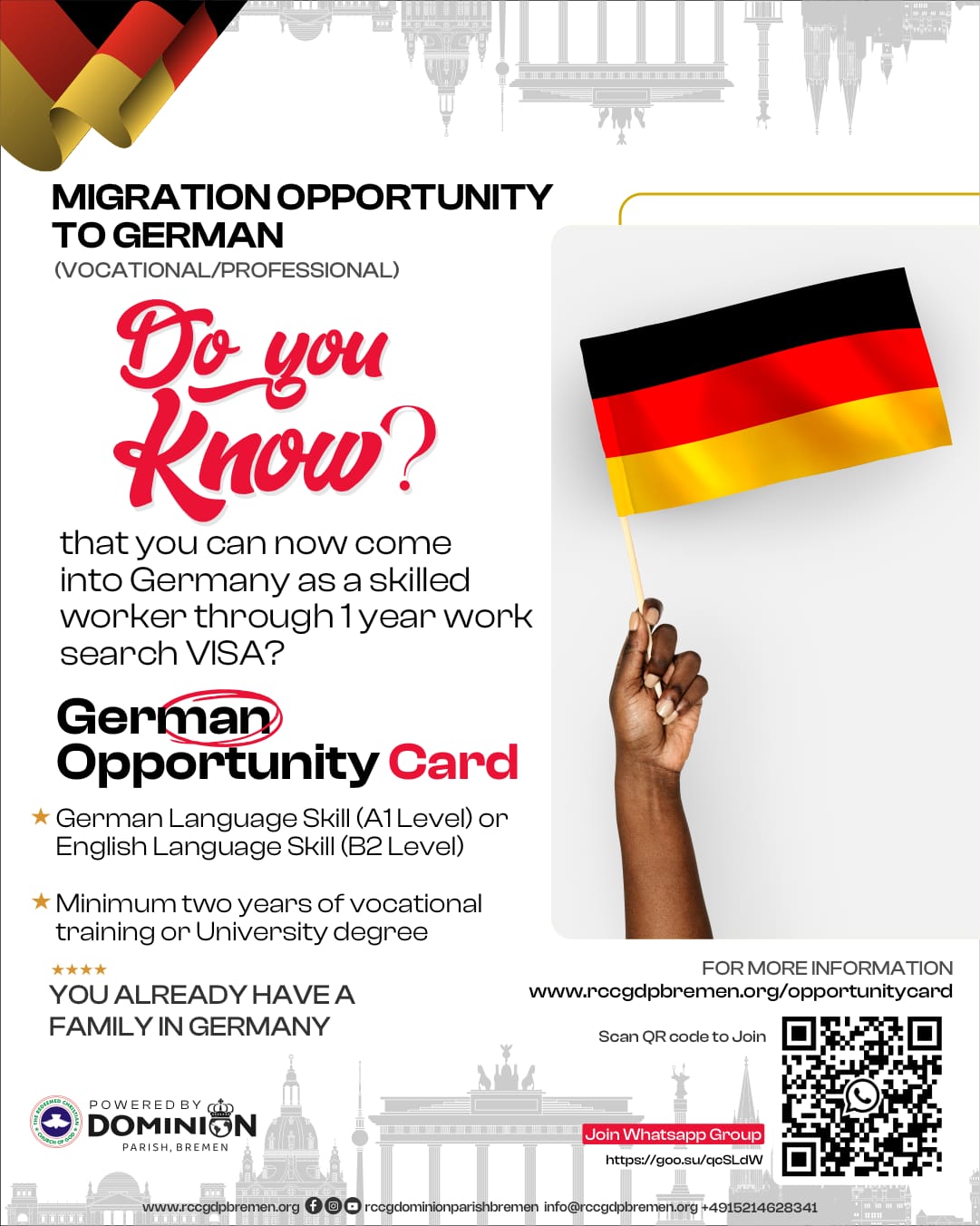 6. There are points allocated to each of the requirements. For more information, click the link of the opportunity chance card at www.chancenkarte.com/de/. For questions and guidance, join the WhatsApp group by clicking the button below.